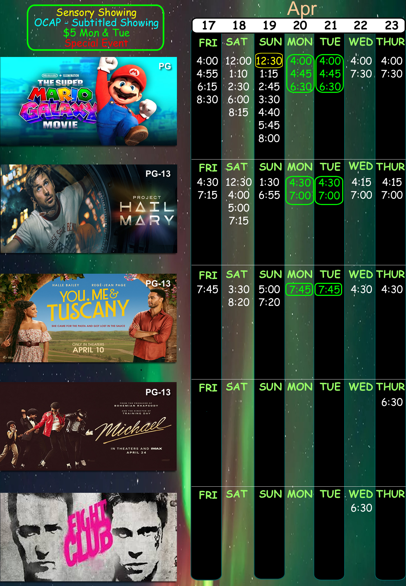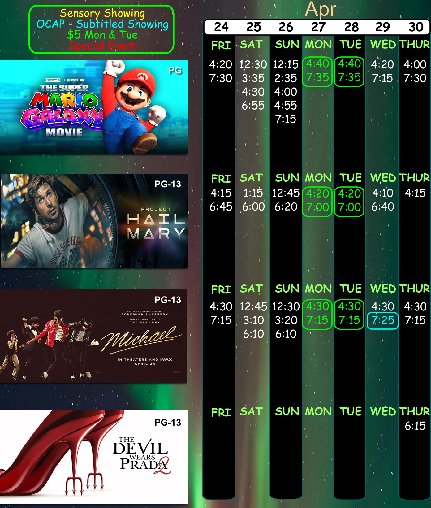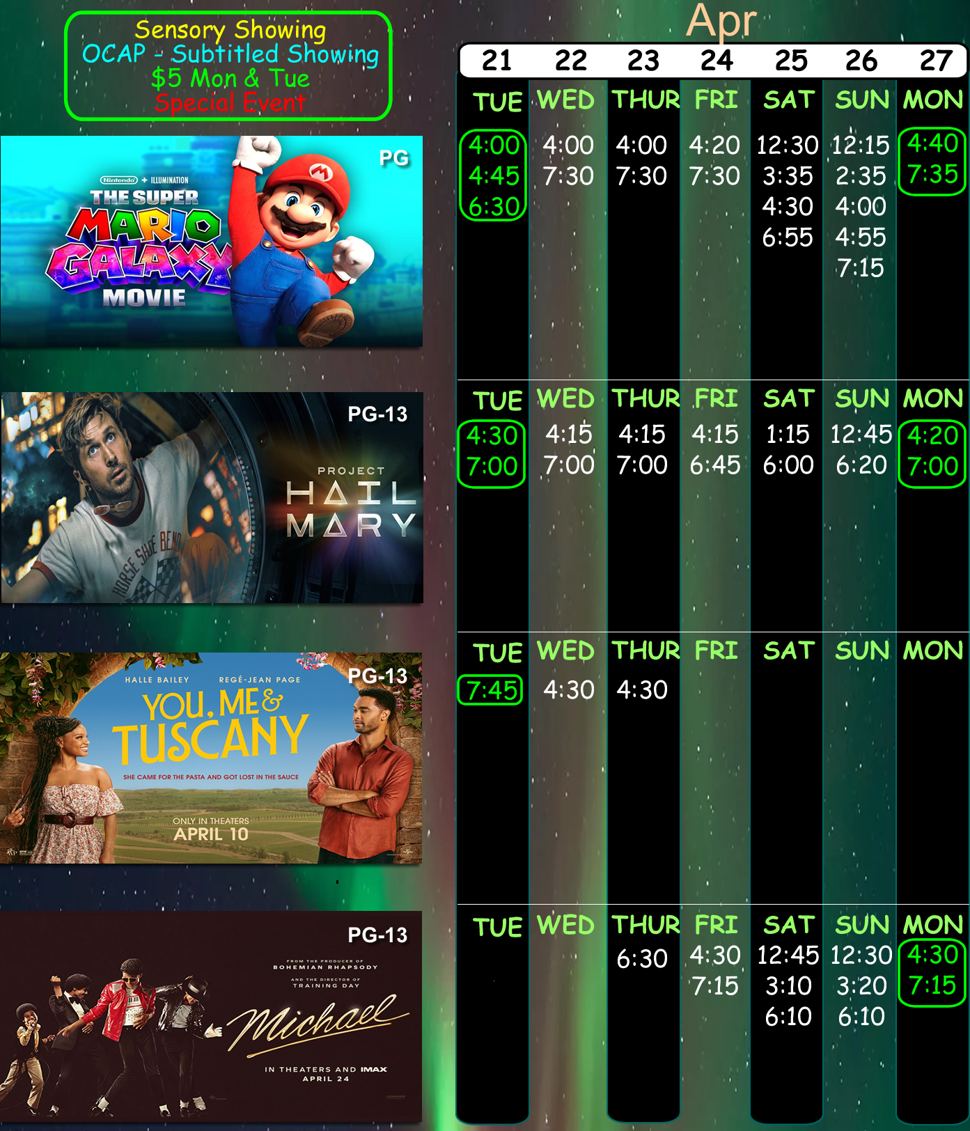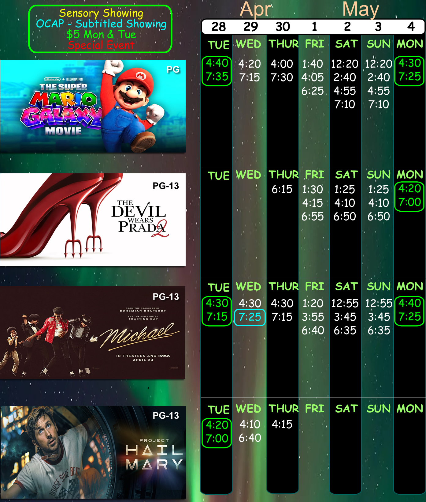 Pick Any Day to see movie times. Click a poster to see times for that movie only.